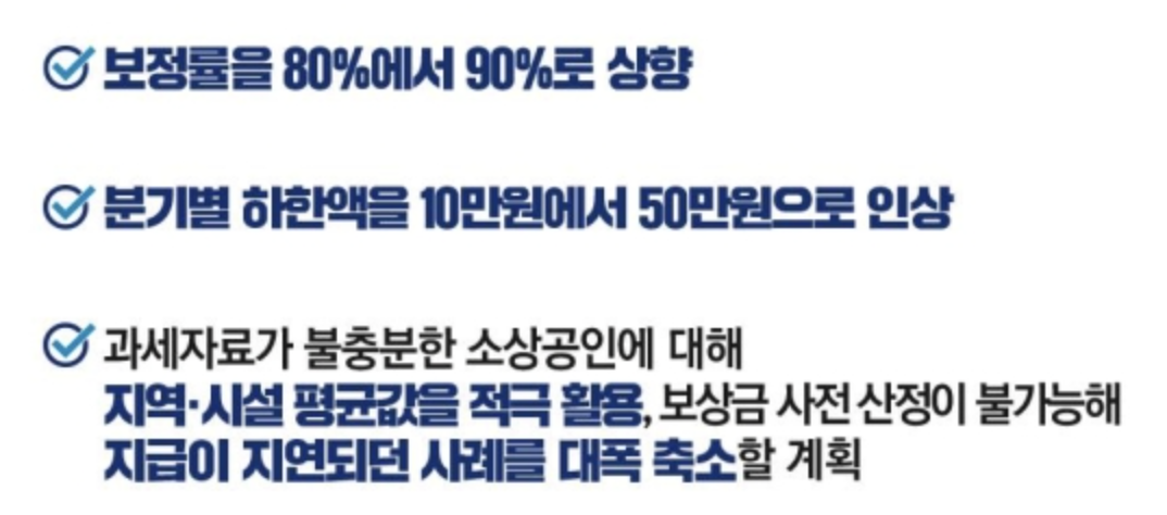 - 또한 과세자료가 불충분했던 소상공인에 대해 지역과 업종의 평균값을 적극활용해 보상금을 산정할 예정이라고합니다